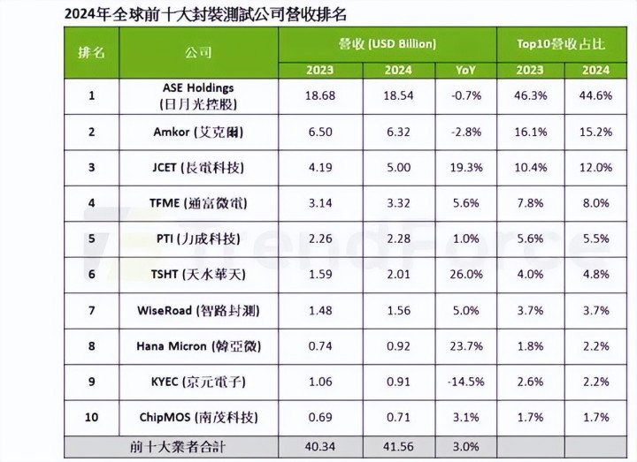 2024年全球前10大芯片封测厂商中,仅美国Amkor一家非中国企业,大陆的长电科技、通富微电等4家企业成功入榜。若包含中国台湾地区企业,中国封测厂商的全球份额超过80%,形成了绝对垄断。