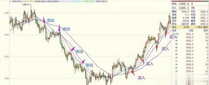 总结:均线组合系统跟随行情趋势循环往返,轮回不息,具有趋势追踪且稳定性强、助涨助跌且买卖明确、又可做到顺势买卖及物极必反,适合短中长线操作,目前被广大投资者采纳应用。