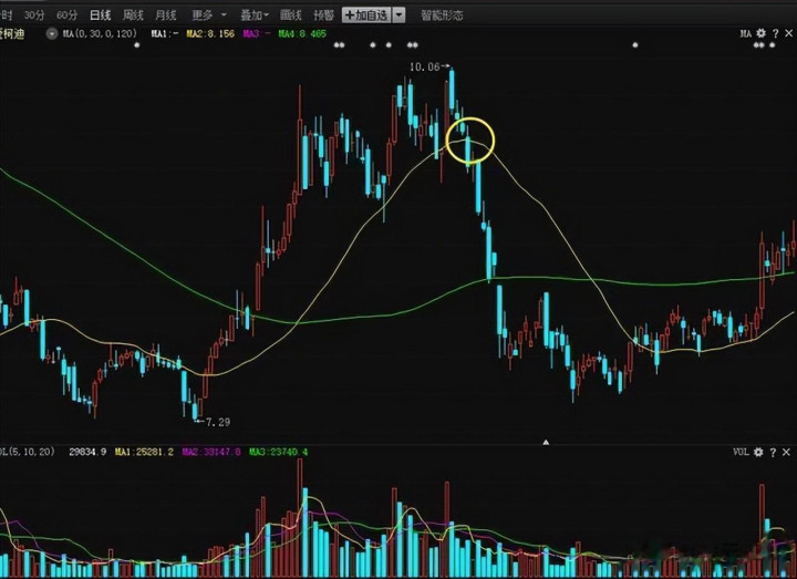 第二、在拉升的初期,股价击穿生命线,说明第一波拉升结束,随后将是洗盘阶段。