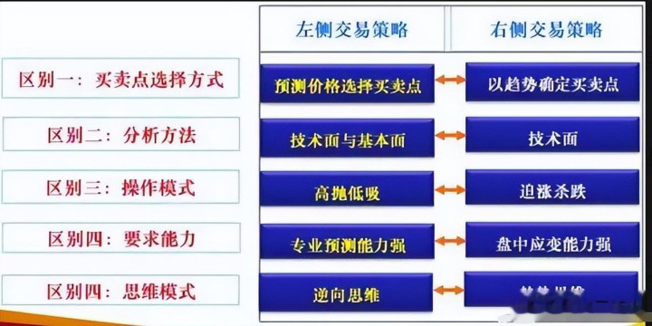 1、在股价上涨时,以股价顶部为界,凡在“顶部”尚未形成的左侧高抛,属左侧交易,而在“顶部”回落后的杀跌,属右侧交易;